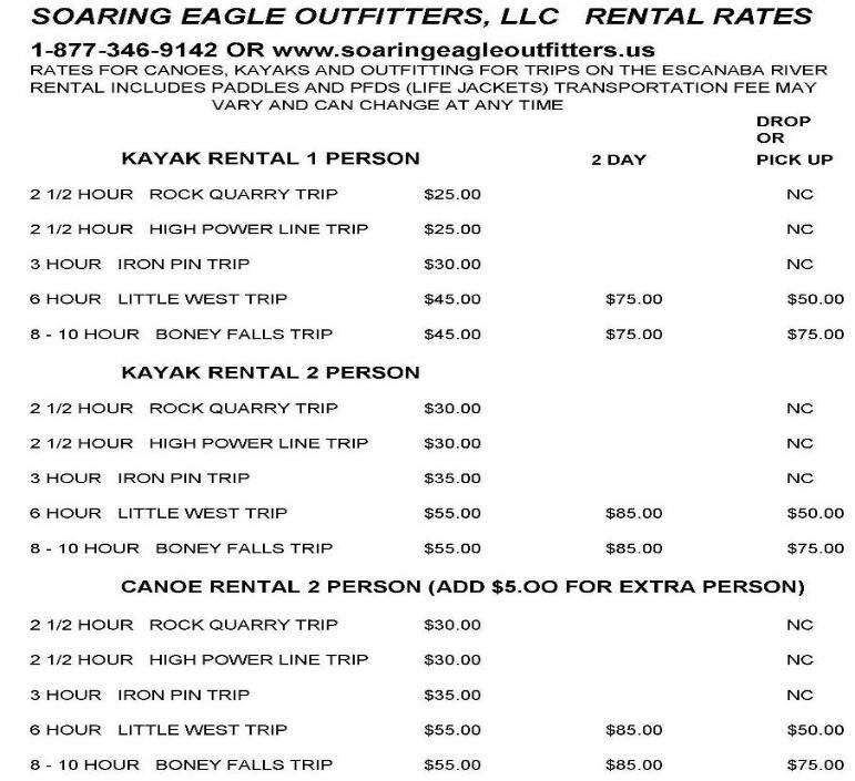 | Escanaba River, Kayak, Canoe, & River tube Rentals. Marquette / Delta County Michigan runs. Were located directly across the street from Peter Nordeen Park & The Forsyth Township Canoe Launch. 93 N Pine Street Historic downtown Gwinn Michigan celebrating 100 years in 2008. |